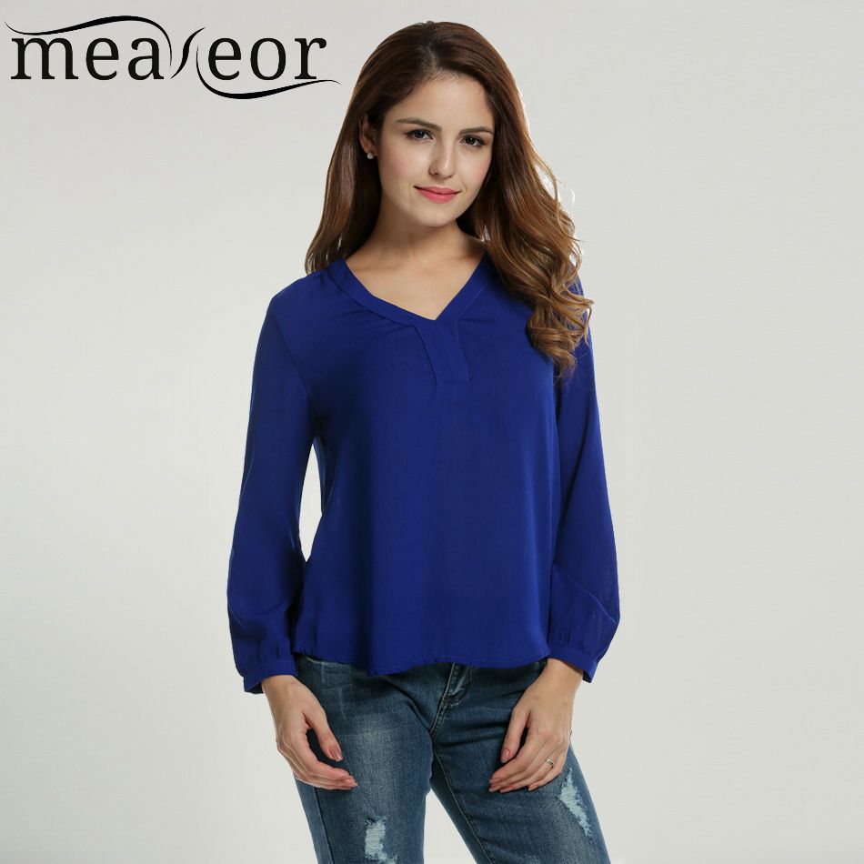Meaneor Women 39 S Chiffon Blouse Shirt New Casual V Neck Solid Loose Long Sleeve High Low Hem Design Simple Stylish Top Blouse From Pinkcolors Store Dhgate Com